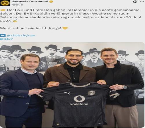 官方:盡管左膝十字韌帶撕裂,但多特蒙德還是宣布和埃姆雷詹簽下了一份2027年到期的新合同。